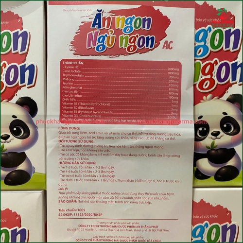 Ản Ngon Ngủ Ngon AC là sản phẩm thực phẩm bảo vệ sức khỏe được nhiều bậc phụ huynh tin dùng cho con em mình. Với công thức kết hợp giữa acid amin L-Lysine, vitamin nhóm B, khoáng chất và dược liệu thiên nhiên, sản phẩm giúp bé ăn ngon miệng hơn, ngủ sâu giấc hơn và phát triển toàn diện. Đặc biệt, sự có mặt của DHA và Thymomodulin góp phần tăng cường trí nhớ và sức đề kháng cho trẻ. Sản phẩm được đóng gói dạng ống uống tiện lợi, dễ sử dụng, phù hợp với trẻ nhỏ. Ản Ngon Ngủ Ngon AC là lựa chọn an toàn, hiệu quả giúp các bé khỏe mạnh, thông minh và phát triển vượt trội.