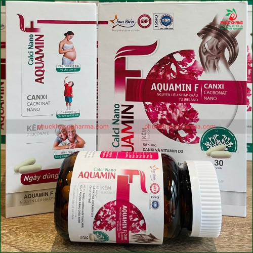 Sản phẩm được sản xuất bởi Công ty Cổ phần Dược phẩm VGAS tại Hà Nội và chịu trách nhiệm về chất lượng bởi Công ty TNHH Thảo dược Sao Biển ở Hưng Yên, theo tiêu chuẩn TCCS với số giấy phép 7017/2020/ĐKSP. Điểm đặc biệt của Aquamin F là sự kết hợp hoàn hảo giữa Aquamin F 400mg từ tảo đỏ Ireland chứa hơn 72 khoáng chất vi lượng, Calci carbonat nano 150mg dễ hấp thu, Vitamin D3 200UI tăng cường hấp thu canxi, Vitamin K2-MK7 dẫn canxi vào xương, cùng Magie và Kẽm hỗ trợ phát triển toàn diện.