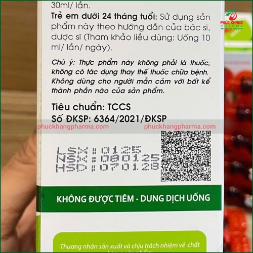 Trẻ em từ 2 tuổi trở lên có thể sử dụng sản phẩm với liều lượng 2-3 lần x 10ml/ngày. Đối với trẻ dưới 24 tháng tuổi, bố mẹ nên tham khảo ý kiến bác sĩ hoặc dược sĩ trước khi cho trẻ dùng để đảm bảo an toàn và liều lượng phù hợp.