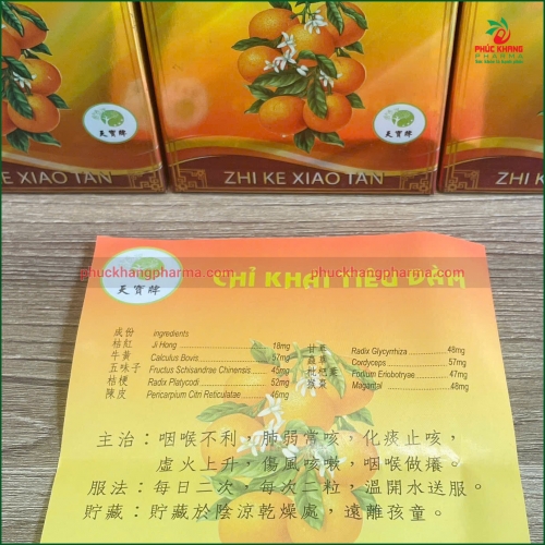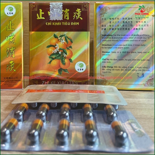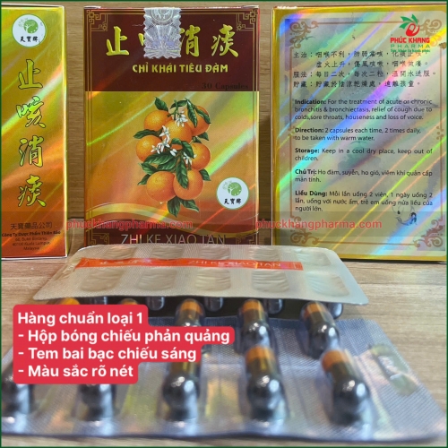 Hộp có in rõ tên: “CHỈ KHÁI TIÊU ĐÀM (ZHI KE XIAO TAN) – 30 Capsules” .