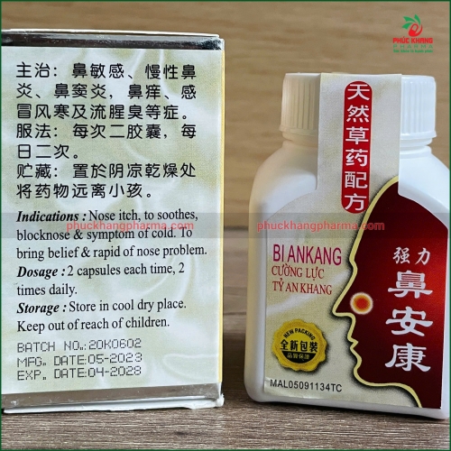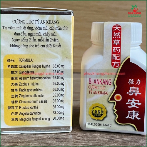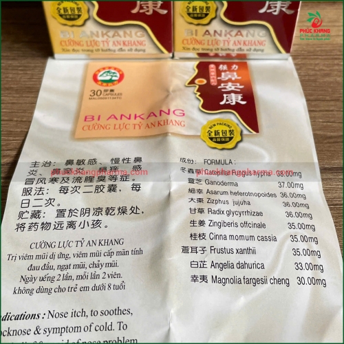 Cường Lực Tỵ An Khang (BI ANKANG) là sản phẩm Đông y cao cấp được bào chế từ thảo dược thiên nhiên theo công thức cổ truyền giúp hỗ trợ điều trị viêm mũi dị ứng, viêm xoang , nghẹt mũi, sổ mũi, ngứa mũi và đau đầu.