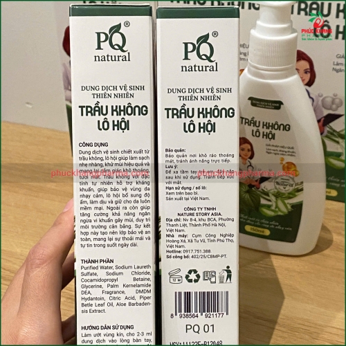 Dung dịch vệ sinh phụ nữ Trầu Không Lô Hội PQ Natural là sản phẩm vệ sinh thiên nhiên được nghiên cứu và sản xuất bởi Công ty TNHH Nature Story Asia, Việt Nam. Sản phẩm được chiết xuất từ trầu không và lô hội - hai thành phần thiên nhiên nổi tiếng với khả năng kháng khuẩn, chống viêm và dưỡng ẩm vượt trội.