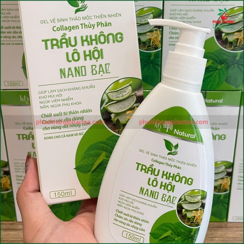 Gel Vệ Sinh Thảo Mộc Thiên Nhiên Collagen Thủy Phân Trầu Không Lô Hội Nano Bac là sự lựa chọn hoàn hảo cho việc chăm sóc vùng da nhạy cảm mỗi ngày. Với 100% thành phần thiên nhiên kết hợp công nghệ nano bạc hiện đại, sản phẩm mang đến giải pháp làm sạch toàn diện, kháng khuẩn mạnh mẽ, khử mùi hiệu quả và dưỡng ẩm dịu nhẹ.