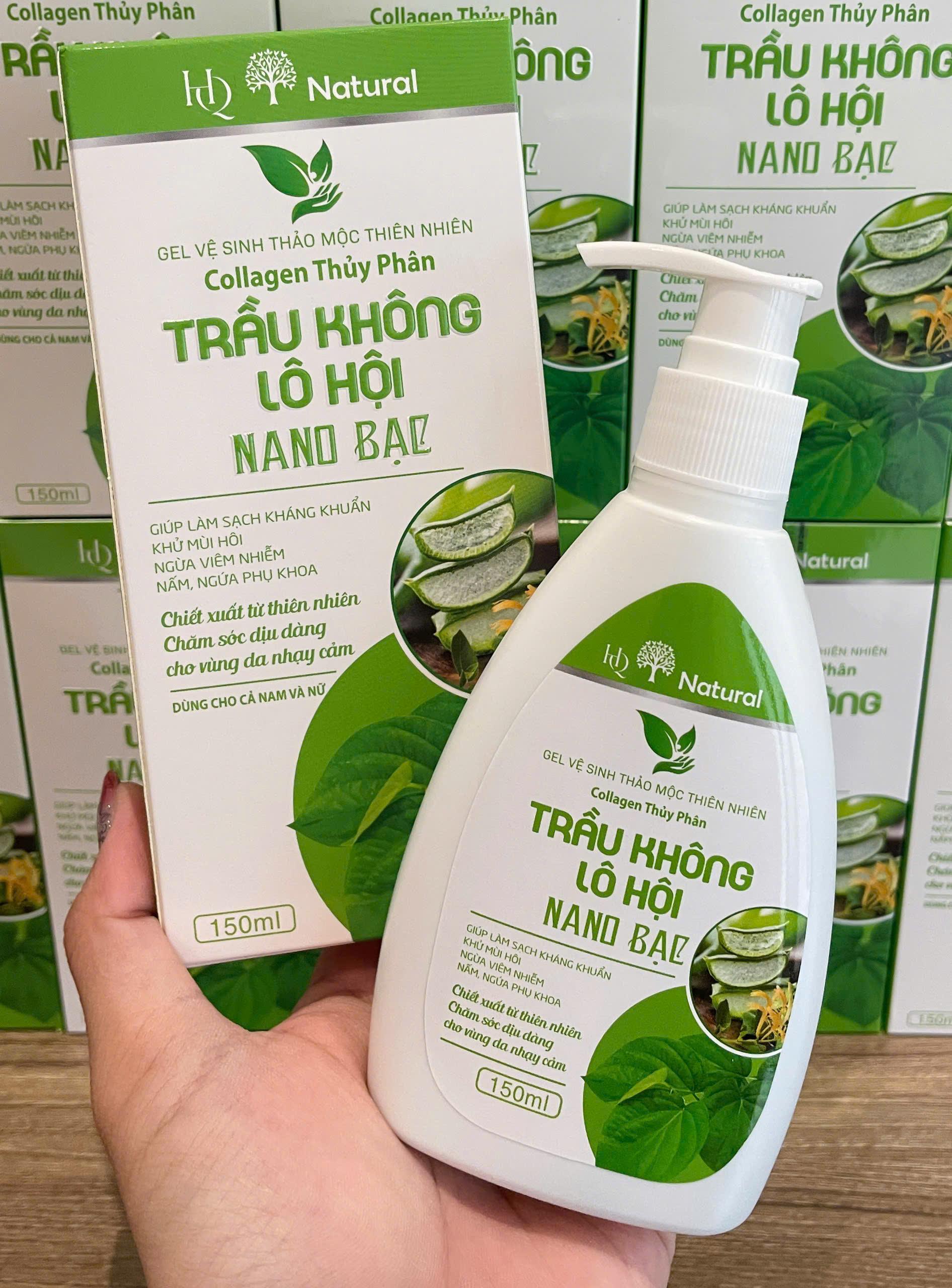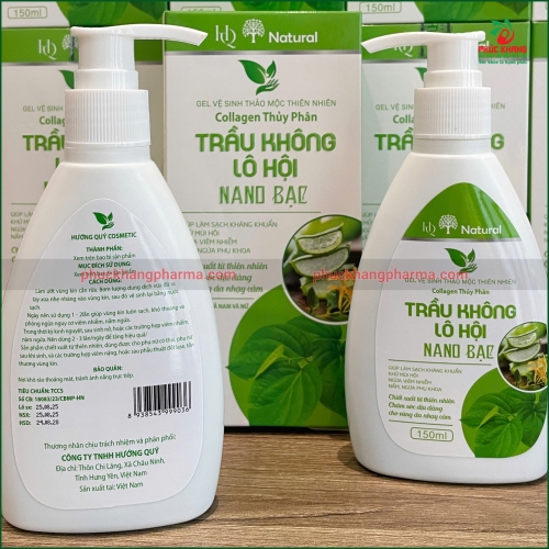 Gel Vệ Sinh Thảo Mộc Thiên Nhiên Collagen Thủy Phân Trầu Không Lô Hội Nano Bac của thương hiệu HD Natural - Hương Quý Cosmetic là sản phẩm vệ sinh chuyên dụng được nghiên cứu và phát triển từ 100% thảo dược thiên nhiên, kết hợp công nghệ nano bạc hiện đại, mang đến giải pháp làm sạch toàn diện, kháng khuẩn mạnh mẽ và dịu nhẹ cho vùng da nhạy cảm.