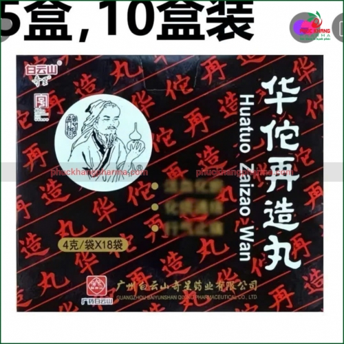 Màu sắc hộp: Nền đen với chữ đỏ và trắng, hình ảnh danh y Hoa Đà in rõ ràng trên mặt trước