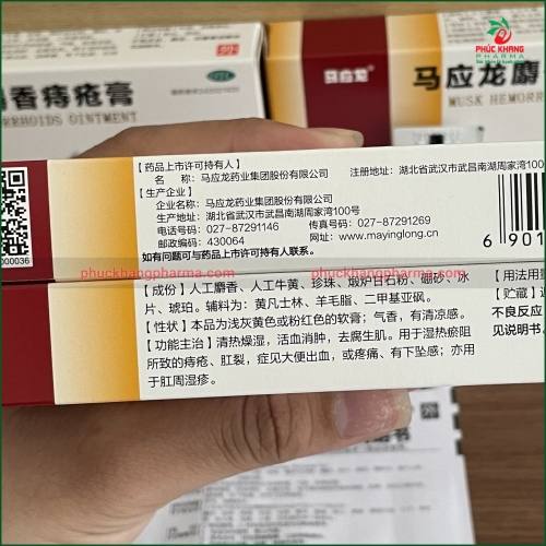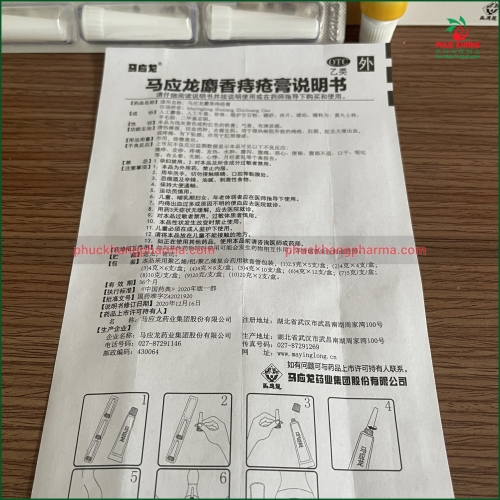 Hộp ghi rõ tên công ty sản xuất: 马应龙药业集团股份有限公司 – Công ty Dược phẩm Mã Ứng Long.