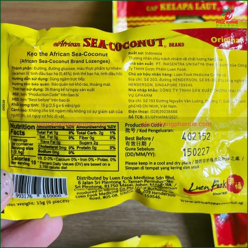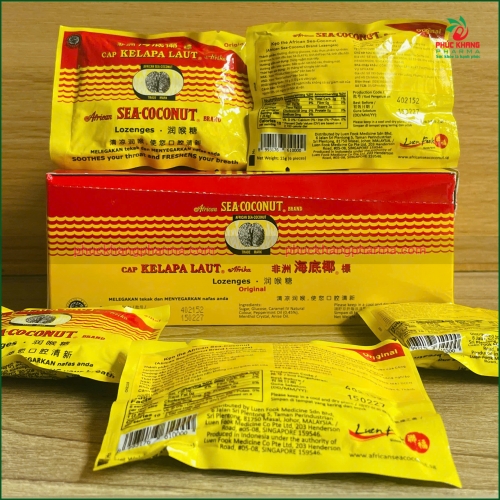 Kẹo ngậm African Sea-Coconut Lozenges là sản phẩm nổi tiếng của thương hiệu African Sea-Coconut – dòng sản phẩm chăm sóc cổ họng được tin dùng tại nhiều quốc gia châu Á.