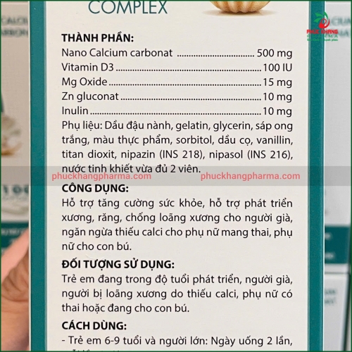 Nano Calcium Complex là giải pháp bổ sung canxi thế hệ mới với công nghệ Nano tiên tiến, giúp tăng khả năng hấp thu canxi lên gấp nhiều lần so với các sản phẩm canxi thông thường. Sản phẩm không chỉ cung cấp 500mg Nano Calcium carbonat mà còn kết hợp với Vitamin D3, Magie, Kẽm và Inulin - những dưỡng chất hỗ trợ tối ưu cho quá trình hấp thu và sử dụng canxi trong cơ thể.