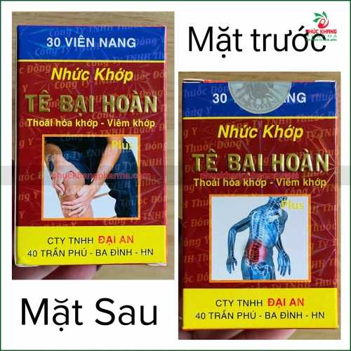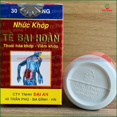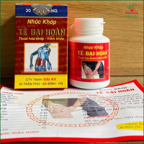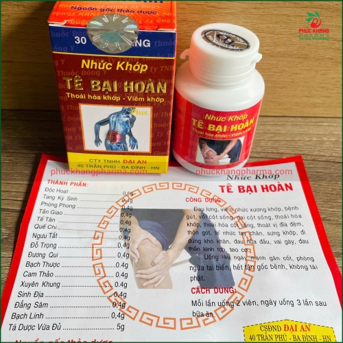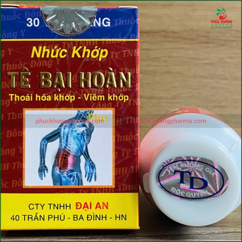 Nhức Khớp Tế Bại Hoàn là sản phẩm thực phẩm bảo vệ sức khỏe được sản xuất bởi Công Ty TNHH Đại An, địa chỉ tại 40 Trần Phú, Ba Đình, Hà Nội. Sản phẩm được đăng ký lưu hành hợp pháp với số đăng ký: VD - 33312 - 13.