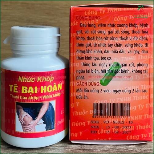 - Logo, tên sản phẩm "Nhức Khớp Tế Bại Hoàn" in rõ ràng