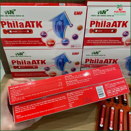 Sản phẩm được sản xuất bởi Công ty Cổ phần Sản xuất Dược Liệu Trung Ương 28 – một đơn vị dược phẩm uy tín tại Việt Nam với dây chuyền sản xuất đạt chuẩn GMP. Với dạng ống uống tiện lợi, dễ sử dụng và hương vị dễ chịu, PhilaATK phù hợp cho cả trẻ em lẫn người lớn trong gia đình.