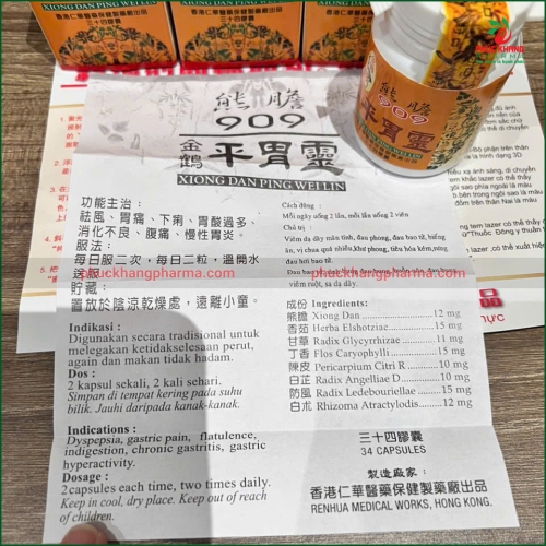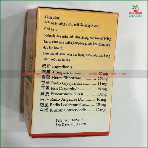 1. Hùng Đảm (Xiong Dan) - 12mg: Mật gấu có tác dụng thanh nhiệt, giải độc, tiêu viêm, giảm đau, đặc biệt hiệu quả với các bệnh lý viêm nhiễm dạ dày.