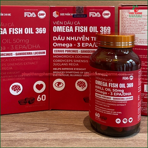 Viên dầu cá Omega Fish Oil 369 là sản phẩm thực phẩm chức năng cao cấp được nghiên cứu và sản xuất bởi Công ty Cổ phần Dược phẩm Santex theo tiêu chuẩn GMP, đạt chứng nhận FDA (Cục Quản lý Thực phẩm và Dược phẩm Hoa Kỳ). Sản phẩm mang tên "Dược phẩm 24H M" - thương hiệu uy tín trong lĩnh vực chăm sóc sức khỏe tại Việt Nam.