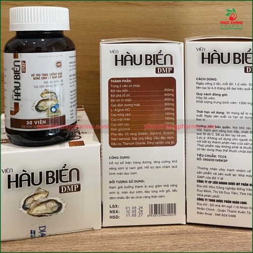 Viên Hậu Biển DMP là sản phẩm thực phẩm chức năng được nghiên cứu với công thức đặc biệt dành riêng cho nam giới, kết hợp tinh hoa từ hàu biển - nguồn khoáng chất quý giá, cùng các thảo dược như dâm dương hoắc, phá cố chỉ, ích tỉ nhân, hồng sâm và L-Arginin - axit amin thiết yếu giúp tăng cường tuần hoàn máu.