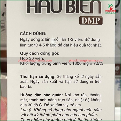 Viên Hậu Biển DMP được chiết xuất từ thảo dược tự nhiên và các thành phần an toàn, đã qua kiểm định của Bộ Y tế. Khi sử dụng đúng liều lượng, sản phẩm rất ít gây tác dụng phụ. Tuy nhiên, nếu có bất kỳ phản ứng bất thường nào, hãy ngừng sử dụng và tham khảo ý kiến bác sĩ.