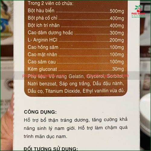 ✅ Tăng cường khả năng sinh lý: Hỗ trợ cải thiện ham muốn, chất lượng đời sống vợ chồng