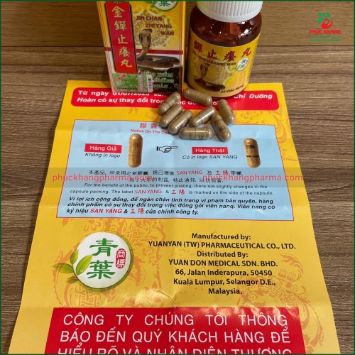 - RẤT QUAN TRỌNG: Trên mỗi viên nang có chữ "SAN YANG & 三陽" được in trực tiếp