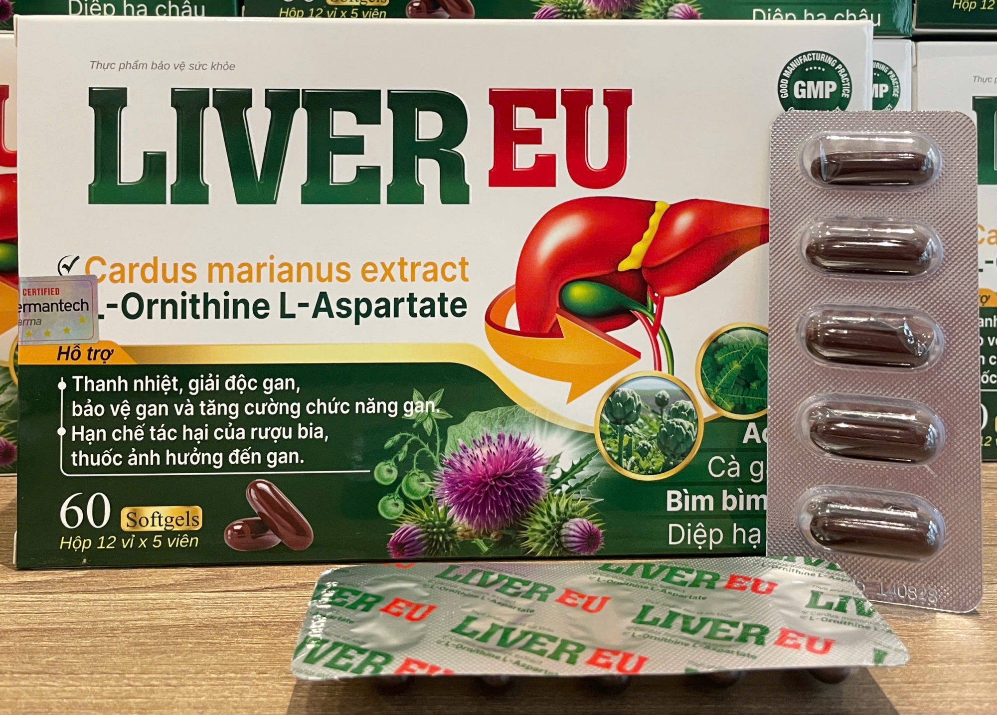 LIVER EU là sản phẩm thực phẩm bảo vệ sức khỏe được nghiên cứu và phát triển dựa trên sự kết hợp hoàn hảo giữa y học cổ truyền Việt Nam và công nghệ hiện đại từ châu Âu, đặc biệt chứa thành phần Cardus marianus extract (chiết xuất từ Kế sữa - Silymarin) - một trong những dược liệu bảo vệ gan hàng đầu được y học thế giới công nhận.
