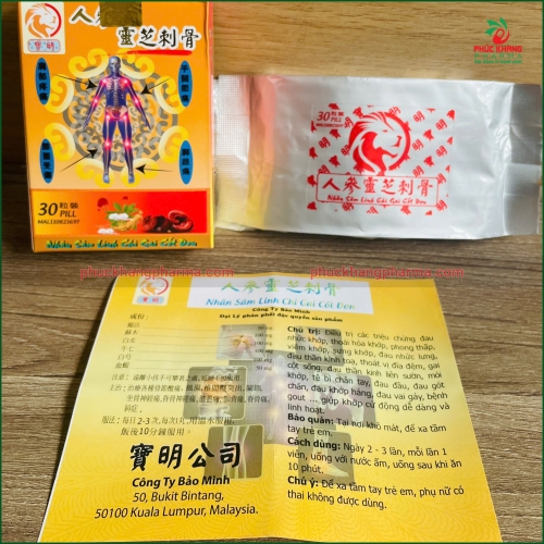 Viên Nhân Sâm Linh Chi Cái Cốt Đơn - tên tiếng Trung là "人参灵芝刮骨丹" (Nhân Sâm Linh Chi Guai Gu Dan) là sản phẩm đông y cao cấp từ Malaysia, được phân phối bởi Công Ty Bảo Minh (Công Ty Bảo Minh - 寶明公司), địa chỉ: 50, Bukit Bintang, 50100 Kuala Lumpur, Malaysia.