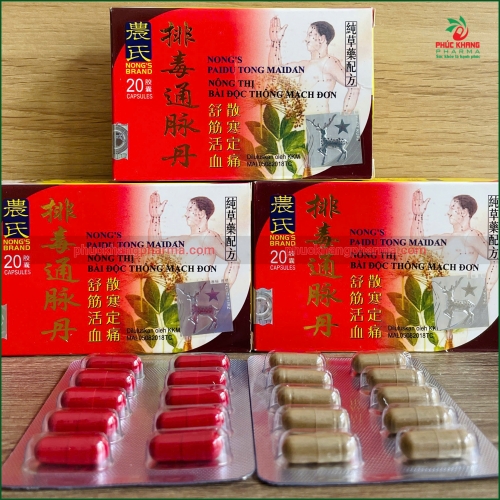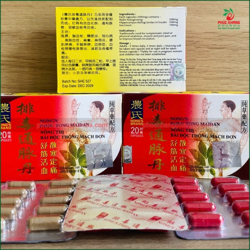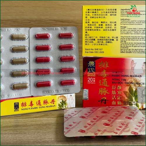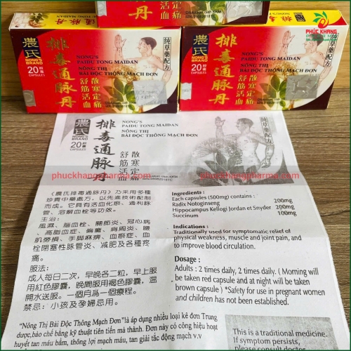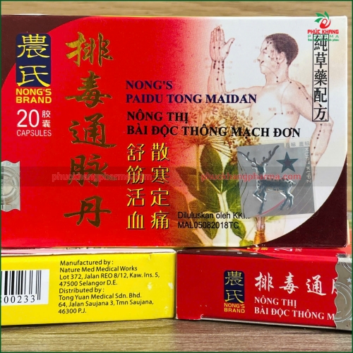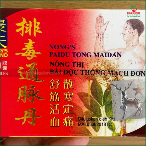 Viên Nông Thị Bài Độc Thông Mạch Đơn (Nong's Paidu Tong Maidan) là sản phẩm đông y truyền thống nổi tiếng đến từ Malaysia, được sản xuất bởi thương hiệu Nong's Brand với hơn nhiều thập kỷ kinh nghiệm trong lĩnh vực chăm sóc sức khỏe tim mạch và hệ thần kinh. Sản phẩm được bào chế từ những vị thuốc quý hiếm như Tam Thất (Sâm Tam Thất), Hải Mã (Cá Ngựa), Hổ Phách (Amber) theo bí quyết y học cổ truyền Trung Hoa.