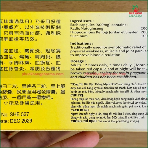 - Có chữ "农氏排毒通脉丹" (Nông Thị Bài Độc Thông Mạch Đơn)
