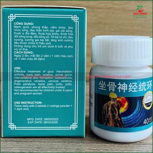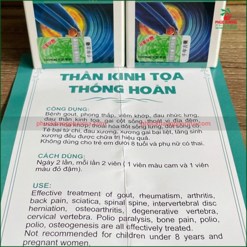 - In tên sản phẩm "THẦN KINH TỌA THỐNG HOÀN" bằng tiếng Việt và "坐骨神经统环" bằng tiếng Trung