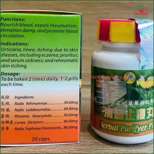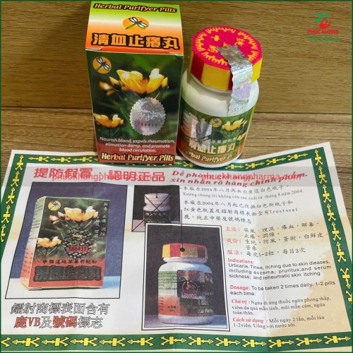 - Tên sản phẩm: "清血止癢丸" và "Herbal Purifyer Pills"
