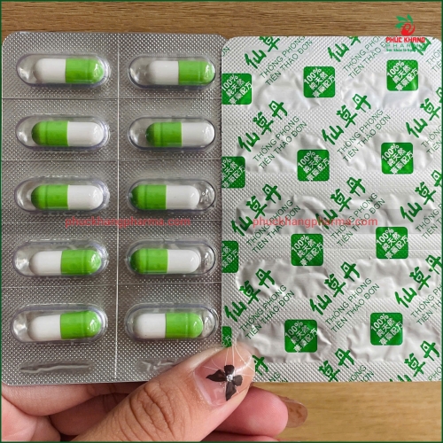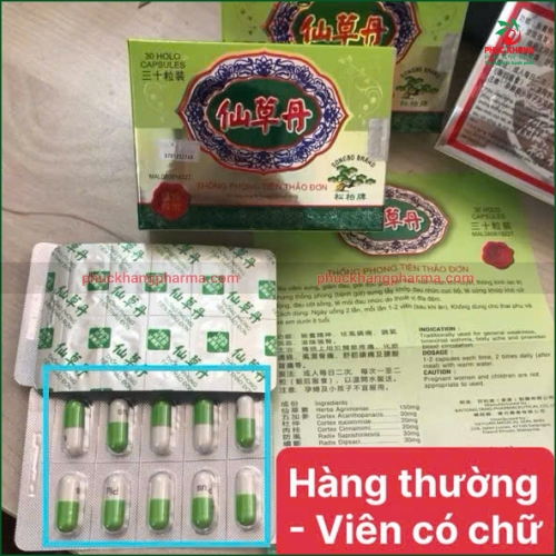 - Vỉ nhôm màu xanh trắng in logo "仙草丹" rõ nét