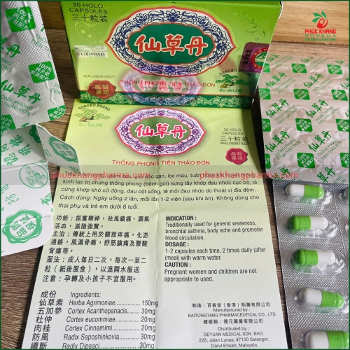 Viên Tiên Thảo Đơn Songbo là sản phẩm thảo dược Đông y truyền thống được bào chế theo công thức cổ truyền, kết hợp 6 vị thuốc quý có tác dụng tiêu viêm, giảm đau, giải độc, lọc máu và tuần hoàn khí huyết. Sản phẩm do Baitongtang Pharmaceutical (Trung Quốc - Hong Kong) sản xuất và được Deyuan Medical (Malaysia) phân phối, đảm bảo chất lượng và nguồn gốc rõ ràng.