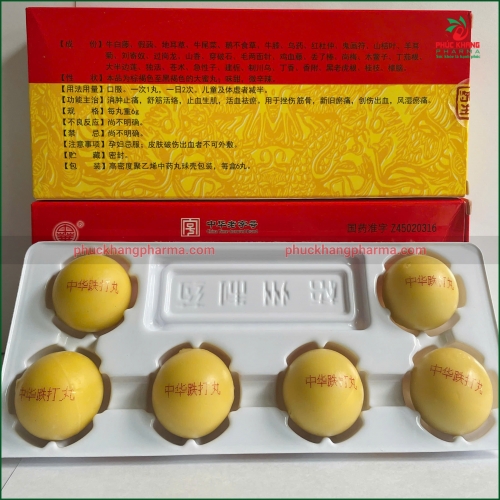 Viên Trung Hoa Điệt Đánh Wan (Zhonghua Dieda Wan) là một sản phẩm y học cổ truyền Trung Quốc nổi tiếng, được bào chế từ nhiều dược liệu quý theo phương pháp truyền thống. Sản phẩm đã được sử dụng rộng rãi trong nhiều thập kỷ để hỗ trợ điều trị thương tích, hoạt huyết tán ứ, giảm đau nhức và tiêu sưng một cách hiệu quả.