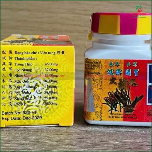 - Trùng Thảo (Đông trùng hạ thảo) - 46.00mg: Được mệnh danh là "vàng mềm", trùng thảo có tác dụng bổ phế thận, tăng cường miễn dịch, cải thiện chức năng hô hấp và tăng cường sức đề kháng