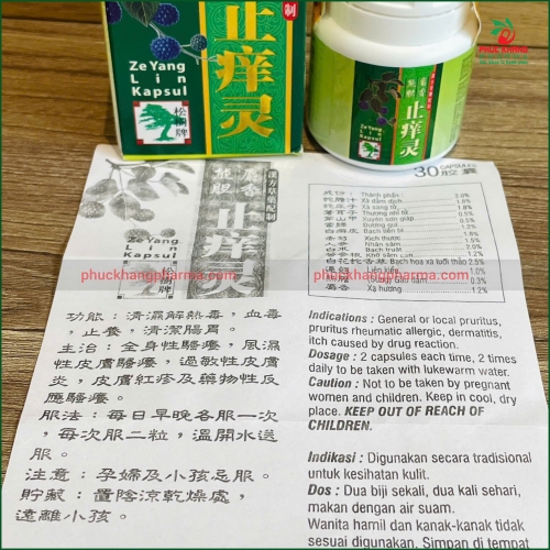 Chỉ Dưỡng Linh (Ze Yang Lin Kapsul) là sản phẩm Đông y cổ phương nổi tiếng được bào chế từ nhiều thảo dược quý giúp thanh nhiệt, giải độc, giảm ngứa và viêm da dị ứng .