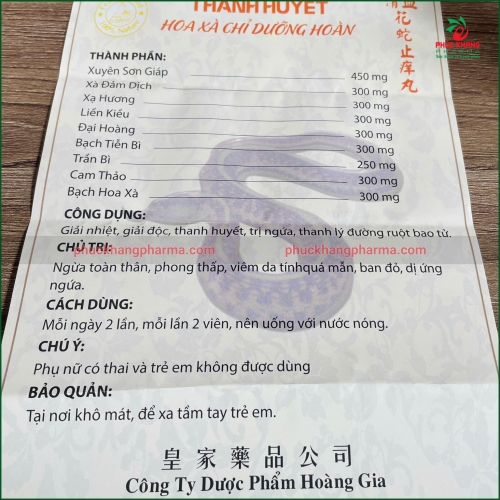 Viên uống Thanh Huyết Hoa Xà Chỉ Dưỡng Hoàn là bài thuốc Đông y cổ truyền quý giá, giúp giải độc, thanh huyết, giảm ngứa và cải thiện các bệnh lý viêm da, mẩn đỏ, dị ứng.