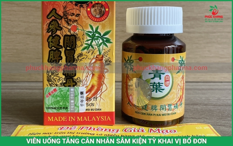 Viên Uống Tăng Cân Nhân Sâm Kiện Tỳ Khai Vị Bổ Đơn là sản phẩm Đông y cao cấp giúp tăng cân an toàn, cải thiện thể trạng và tăng cường sức khỏe tổng thể .