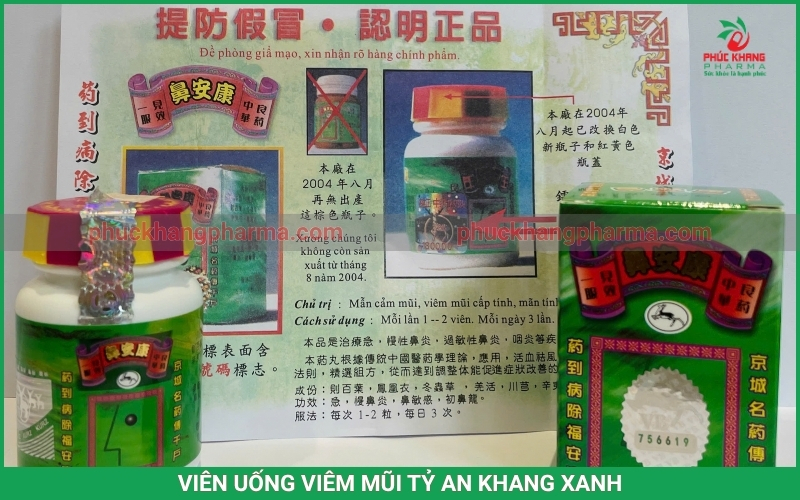Viên Uống Viêm Mũi Tỷ An Khang Xanh là sản phẩm hỗ trợ điều trị viêm mũi dị ứng, viêm xoang cấp và mãn tính, được bào chế từ công thức Đông y cổ truyền kết hợp công nghệ sản xuất hiện đại.