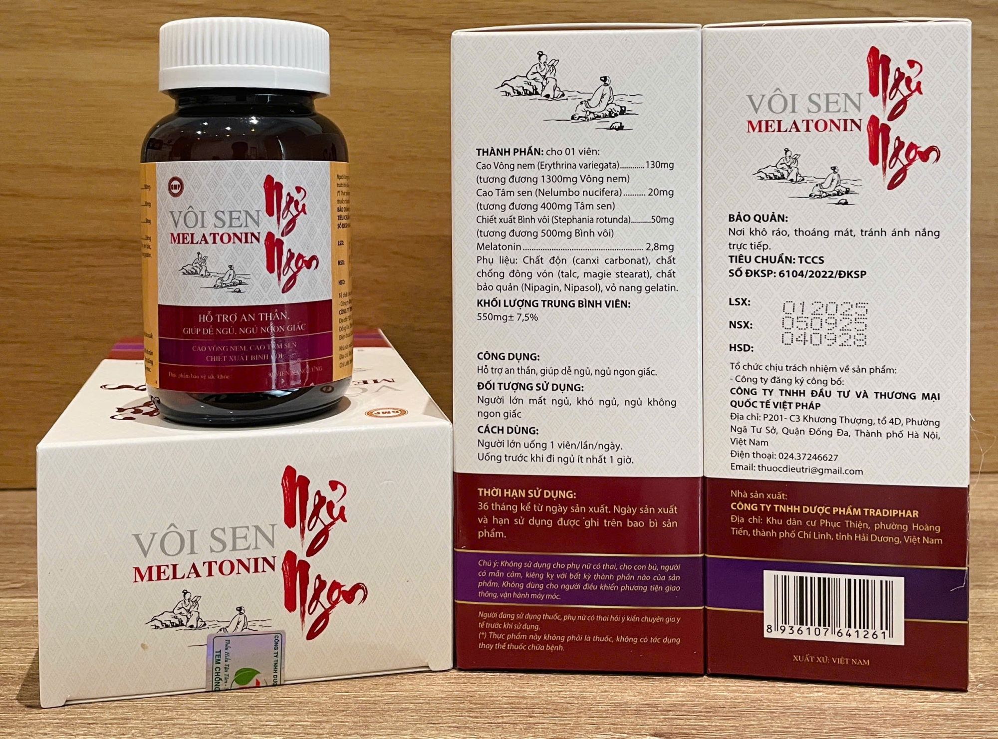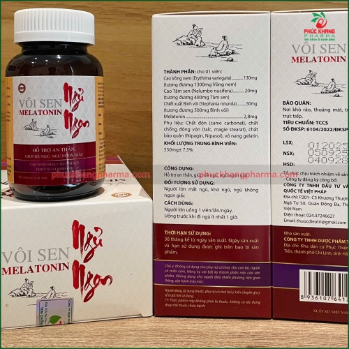 Viên uống Vôi Sen Melatonin Ngủ Ngon là sản phẩm thực phẩm chức năng được nghiên cứu và sản xuất bởi Công ty TNHH Dược phẩm Tradiphar, kết hợp tinh hoa y học cổ truyền Việt Nam với khoa học hiện đại. Sản phẩm chứa Melatonin - hormone điều hòa giấc ngủ tự nhiên, cùng với bộ ba dược liệu quý Vông nem (Erythrina variegata), Tâm sen (Nelumbo nucifera), và Bình vôi (Stephania rotunda) - những vị thuốc nổi tiếng trong Đông y với công dụng an thần, dưỡng tâm, giúp con người dễ dàng chìm vào giấc ngủ sâu, thức dậy tràn đầy năng lượng.
