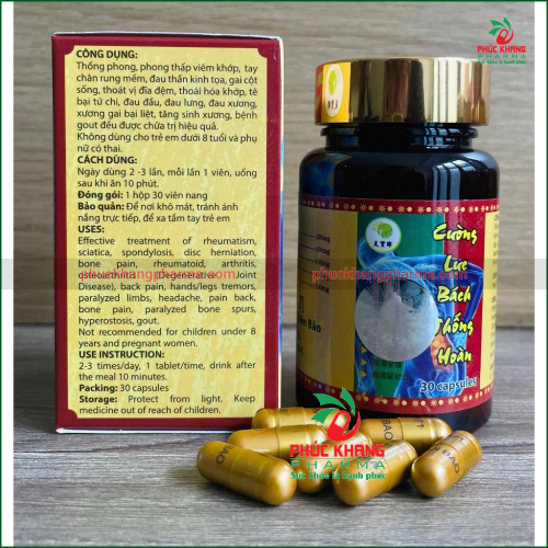 Với sự kết hợp của các dược liệu quý như độc hoạt, thiên ma, ngưu tất, xuyên khung, sản phẩm giúp giảm đau nhức xương khớp, hỗ trợ lưu thông khí huyết và thư giãn gân cốt. Đặc biệt, Cường Lực Bách Thống Hoàn không chỉ giúp giảm đau mà còn tăng cường sức khỏe xương khớp, hỗ trợ vận động linh hoạt.