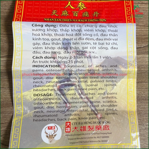 Phúc Khang Pharma phân phối chính hãng Nhân Sâm Thiên Ma Bách Thống Đơn – sản phẩm Đông y cao cấp được nhiều người tin dùng trong hỗ trợ điều trị viêm khớp, đau thần kinh tọa, thoái hóa cột sống và phong thấp.
