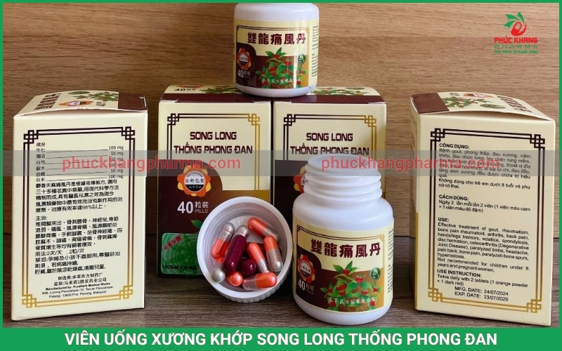 Viên Uống Xương Khớp Song Long Thống Phong Đan là sản phẩm hỗ trợ điều trị các bệnh lý về xương khớp, có nguồn gốc từ Malaysia, được bào chế từ nhiều thảo dược tự nhiên quý hiếm theo công thức Đông y hiện đại.