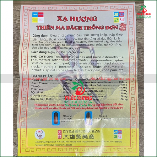Xạ Hương Thiên Ma Bách Thống Đơn là sản phẩm hỗ trợ điều trị các vấn đề về xương khớp như đau nhức, viêm khớp, thoái hóa khớp và gout. Với thành phần từ các thảo dược thiên nhiên, sản phẩm giúp giảm đau, kháng viêm và cải thiện chức năng vận động.