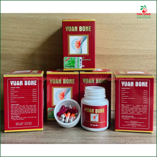 Với công thức kết hợp giữa các hoạt chất nổi tiếng trong ngành xương khớp như Glucosamin, Chondroitin, MSM và Boswellia, Yuan Bone mang lại hiệu quả cao trong việc giảm đau, kháng viêm và phục hồi vận động cho người bệnh.