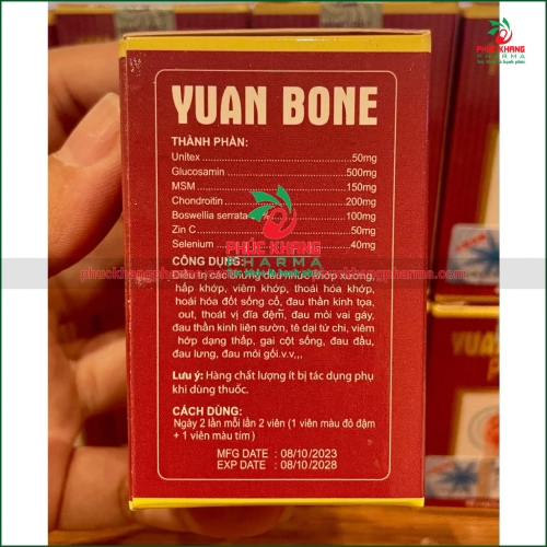 Với công thức kết hợp giữa các hoạt chất nổi tiếng trong ngành xương khớp như Glucosamin, Chondroitin, MSM và Boswellia, Yuan Bone mang lại hiệu quả cao trong việc giảm đau, kháng viêm và phục hồi vận động cho người bệnh.