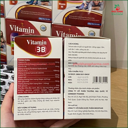 Vitamin 3B & Beta Glucan là sản phẩm thực phẩm chức năng được nghiên cứu và phát triển để bổ sung các vitamin nhóm B thiết yếu cho cơ thể. Sản phẩm kết hợp ba vitamin B quan trọng (B1, B6, B12) cùng với Lysine, Magie, Kẽm và Beta Glucan tạo nên công thức dinh dưỡng toàn diện. Vitamin nhóm B đóng vai trò quan trọng trong quá trình chuyển hóa năng lượng, duy trì hoạt động của hệ thần kinh và sản xuất hồng cầu. Thiếu hụt vitamin B có thể dẫn đến nhiều vấn đề sức khỏe như mệt mỏi, kém tập trung, tê bì tay chân, thiếu máu. Sản phẩm được sản xuất bởi Công ty Cổ phần Dược phẩm Mediphar theo tiêu chuẩn GMP, đảm bảo chất lượng cao. Với dạng viên nang mềm dễ nuốt, Vitamin 3B phù hợp cho cả trẻ em từ 9 tuổi và người lớn, giúp bổ sung dinh dưỡng hiệu quả cho cơ thể.